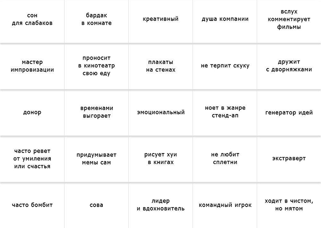 всем аньон. на связи распределяющая шляпа, а чтобы мне было легче определиться с вашим факультетом я предлагаю сыграть в бинго. все просто. перед вами четыре бинго-листа, просто заполните все четыре и принесите, а я отправлю вас на нужный факультет и подарю плашку.
